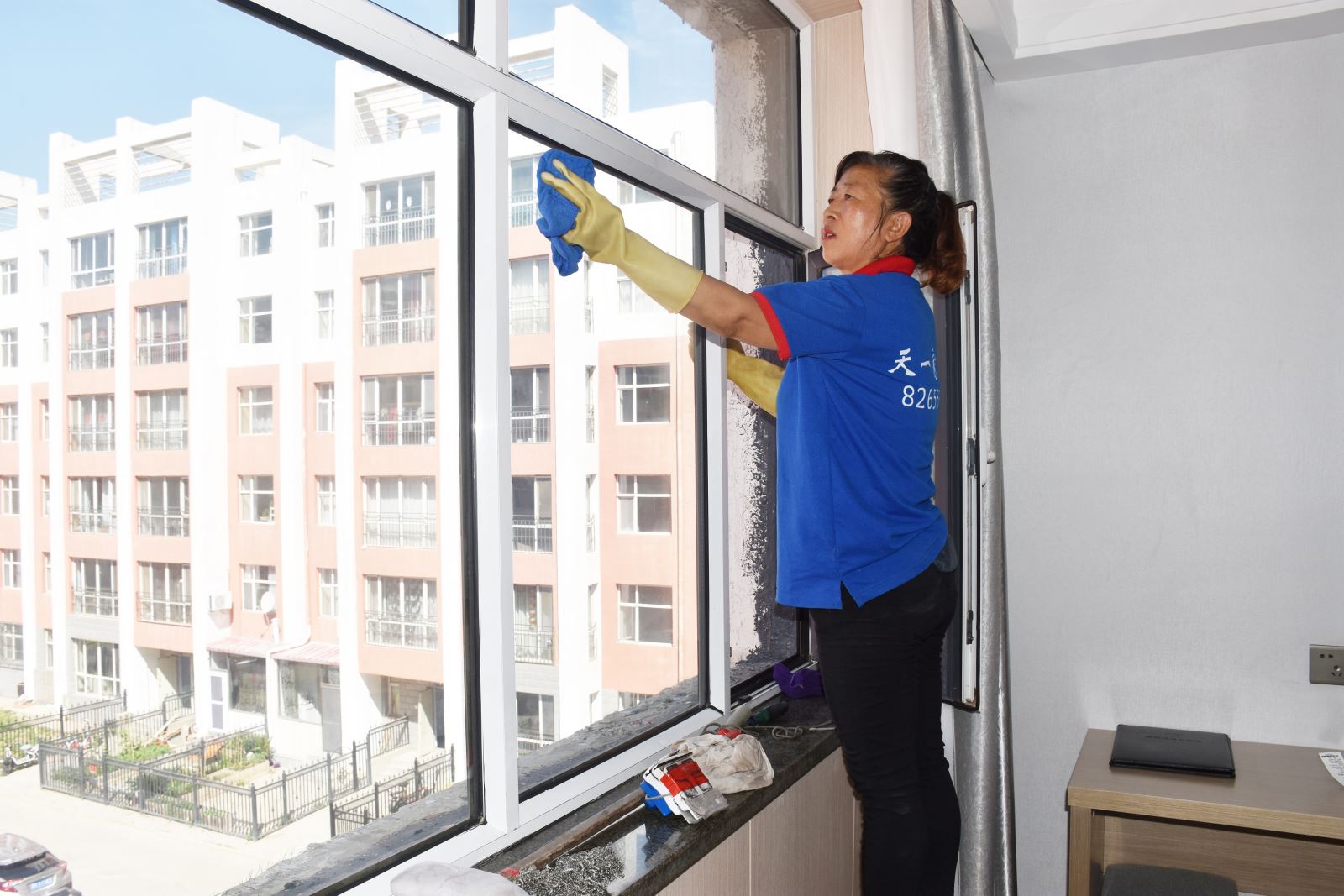天一家政公司專業(yè)承接政府機關、企事業(yè)單位和賓館酒店高空玻璃幕清洗、保潔等服務